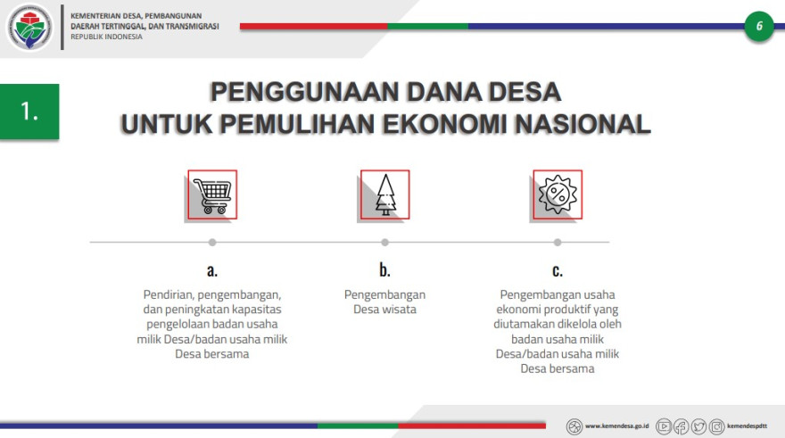 1) Pemulihan ekonomi nasional sesuai kewenangan Desa: